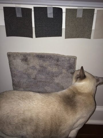 Love the pre stained carpet. Suggest you choose in the same way as you chose the forfeits. cut the samples into small pieces and allow the cats to choose. After all they have far better taste than any of us humanoids and after all they will be spending more time surrounded by our mistake than anyone else.