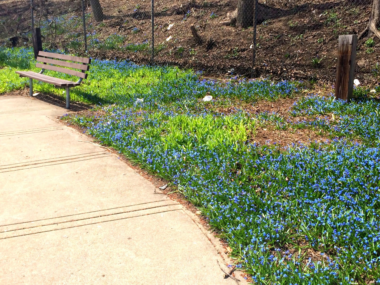 Anyway, enough of that, but I wanted to share as I’m feeling in a rather chipper mood and considerably more perky than I’ve been for a long while. It also helps that its not sub-zero temperatures outside any more and the whole town seems to be bursting forth with life and sproutiness. Walking to go buy a paper last Saturday (and to have a hot stone massage to treat myself and my new Temple-like body), I walked past a little crop of bluebells, right by the train station. It reminded me of growing up in Cornwall, the vast swathes of bluebells and daffodils that used to dot the countryside, and it made me feel warm and vaguely nostalgic. I think i’m definitely getting soft in my old age. Its also getting more and more beautiful around town, as the trees start coming in to blossom – today, it was a glorious 65 degrees and the simple joy of feeling the warmth of the sun on your face is definitely appreciated more after the Snowmaggedon I’ve just endured! Its even getting warm enough now so that a trip up to our gorgeous roof deck is now completely pleasant and a sensible thing to do, rather than a hypothetically good idea that turns out to be bloody freezing, but which you sit out for at least 10 mins anyway, in an act of futile meteorological defiance! It did, though, force me to finally figure out how the fire pit worked, so that trip wasn’t completely wasted!