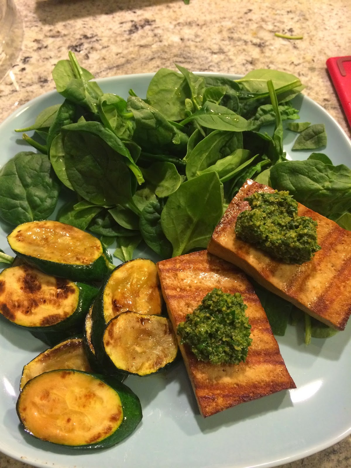 | Grilled tofu with basil cilantro pesto and grilled courgettes |
