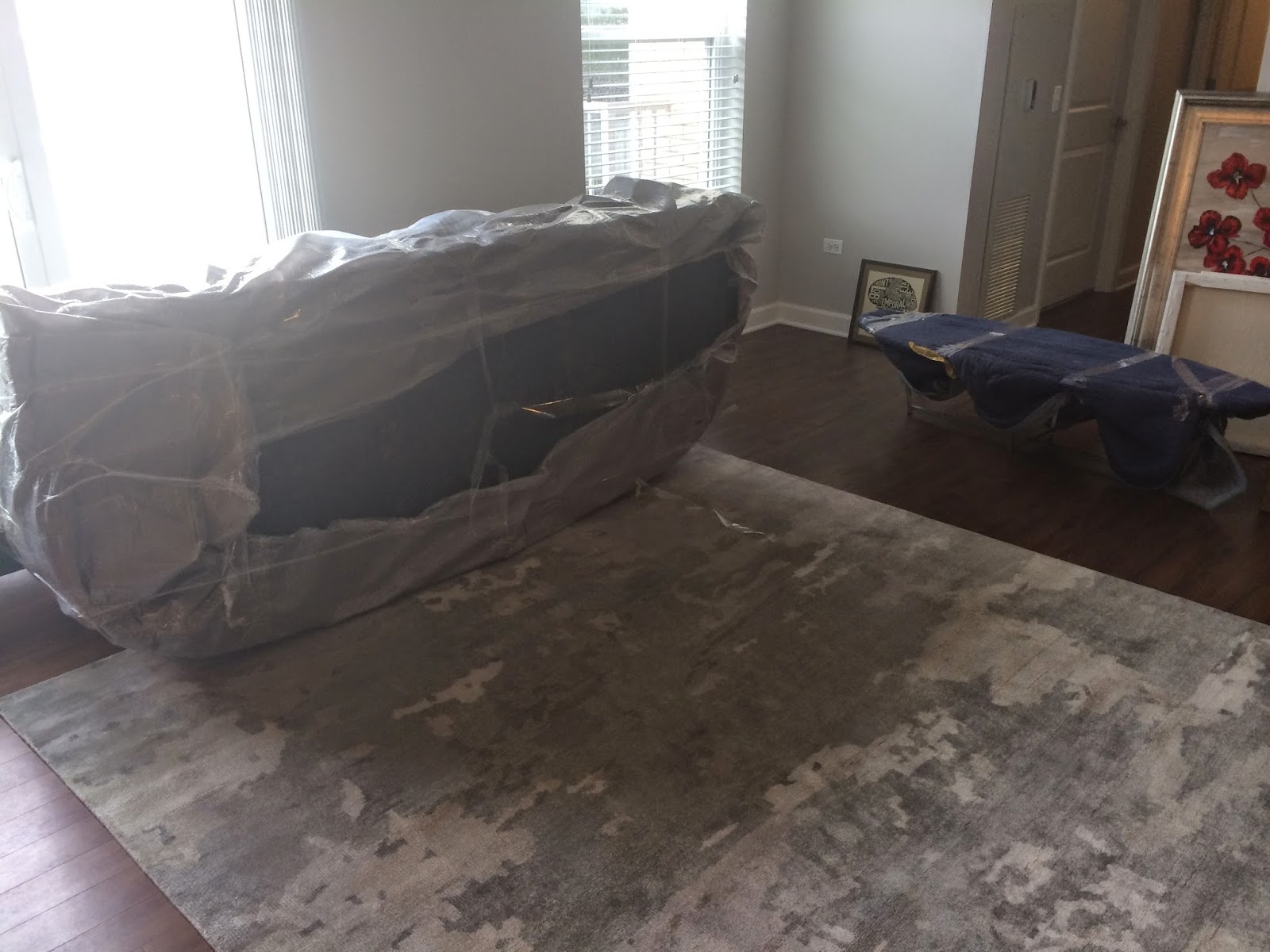 I took the week off for the move – I got the keys officially on Tuesday (though they let me in early on Friday to take some measurements for my closet re-install) and had arranged for the cable guy and the closet man to come and transfer my internet service and my closet system (not cheap – but worth it),.  Wednesday the movers came to move all the heavy items of furniture (i’d spent all of Tuesday moving everything else by hand with a little cart – i made so many trips between my old and new place, I got blisters on the underside of my toes!) and then Thursday all my new furniture from Room and Board arrived!  I’ve been waiting for it since the beginning of February (some of it was custom made) and working with Rachel from the Skokie store on the design, so we were both excited to see how it all came together.  Then Friday was my apartment-warming party and, through a herculean effort, I had everything done!  All the pictures were up, everything was put away, fresh flowers in vases and champagne on ice.  The sushi arrived at 4pm, the pizzas were ready to bake, the bar cart was fully stocked and all that was needed was to add friends, and serve!  I’d put from 5pm – 8pm on the invite but – almost to a tee and within 10 mins of each other – everyone turned up on the dot at 6pm!  Isn’t human behavior fascinating?  I was quite glad of the extra hour to finish getting ready – but quite relieved all the same when everyone turned up!  I’d invited some of my immediate neighbors too (the old-fashioned way with handwritten notes under the door) so a few of them came along too.  Christopher did a bang up job with the coffee tequila and Baileys shots (mmm) and Lauren served as impromptu quiz master asking us random questions about even more random topics downloaded from the internet.  It turned into quite a late affair (apologies to the neighbor who lives next door and whom I’d invited but didn’t show) with the last guest leaving at just before 1am!!  The jereboam from Domaine Carneros went down a treat and, all in all, a quite heroic amount of champagne was consumed – well done, chaps!  And, other than one champagne glass falling casualty, everything was unscathed and the brand spanking new furniture made it through without incident!