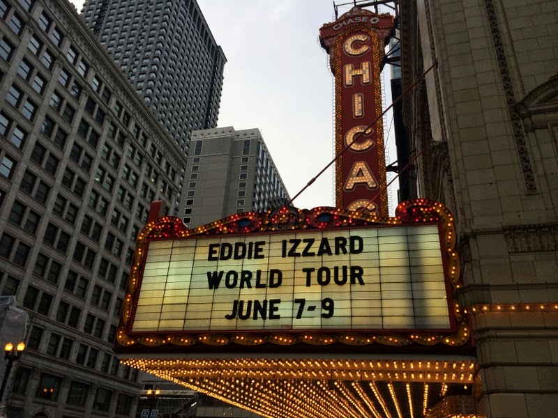 Anyway, that gives you a taste of Eddie at the Height of His Powers and, this time, he did not disappoint! While I’d say he still wasn’t quite as consistently brilliant as his Jam Trouser and Covered in Bees days, he was still pretty damn funny! He was playing for 3 nights at the Chicago Theatre as part of his world tour (thanks, Jason for the earlier NYC-based tip-off!) so we caught him on his second night. It was the first time I’d been to the theater, so that was also fun and new, and I’d had the genius idea of pre-paying for parking (only $21 which – by SF standards – is super cheap!) in the garage attached to the venue, so no need to stress out about finding somewhere to park! The show was due to start at 8pm, so we left home at around 6.45pm, arriving at the theatre about 30mins later with plenty of time to spare. I’d gotten us pretty decent tickets (row GG) so was very happy indeed with how close we were to the stage and our view! The venue itself is pretty small, so there probably wasn’t a bad seat in the house. The only mild concern as we sat in our seats ahead of show time was who would end up sitting in front of us! There did seem to be an inordinately large number of freakishly tall people (perhaps there was a basketball conference in town or something) so Mumsie and I sat in our seats, both silently praying for short people!! In the end we completely lucked out as there was no-one in front of us, so we had a perfectly unobstructed view for the whole of the performance.