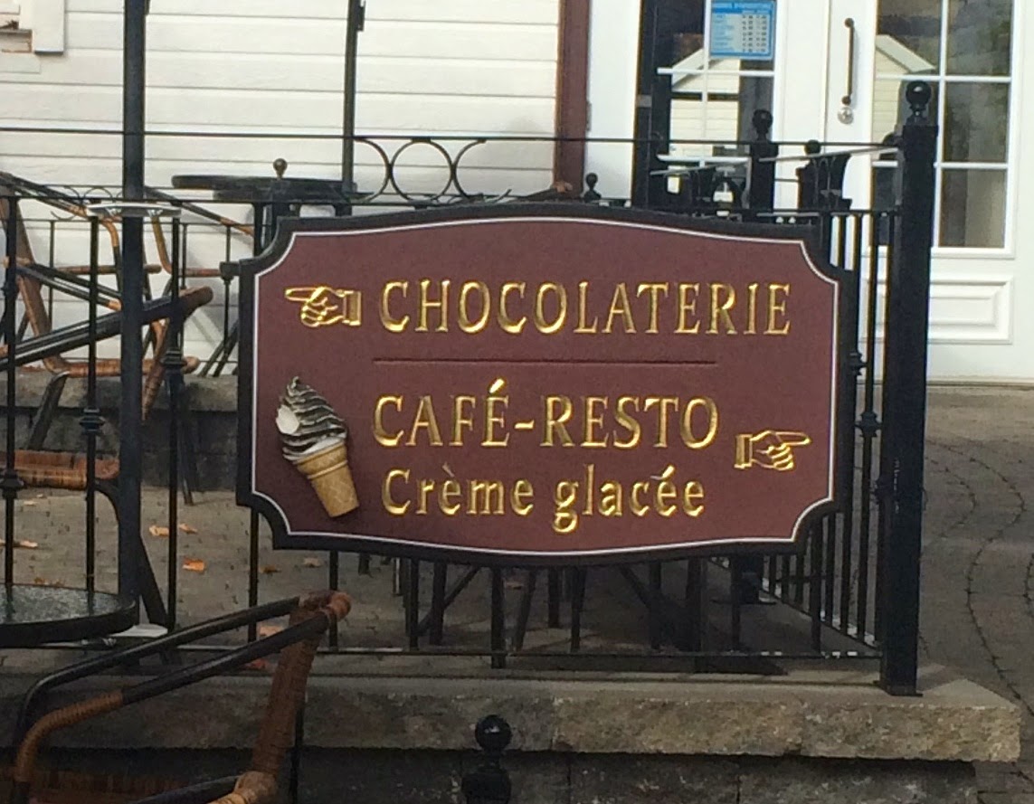 The first stop was to take us outside of the city limits and over the suspension bridge to the Ile-d’Orleans – a beautiful rural island in the middle of the St Lawrence river. Other than the 19th century style houses and atmosphere on the island (it was discovered by Jacques Cartier in 1535 – and you thought he just made watches!), the main attraction we were going to see was the local chocolate factory! To be honest, I couldn’t actually see much manufacturing of chocolate going on, but the building itself was suitably historic and olde-worldy plus it smelled divine. I did my part to hold up the retail end of the business with some early festive choccy purchases and spent a very contented quarter hour or so, sitting outside in the warm sunshine, munching away on strawberry crèmes and admiring the fall leaves. Not a bad way to start a Saturday morning, I thought to myself. Well done, me.