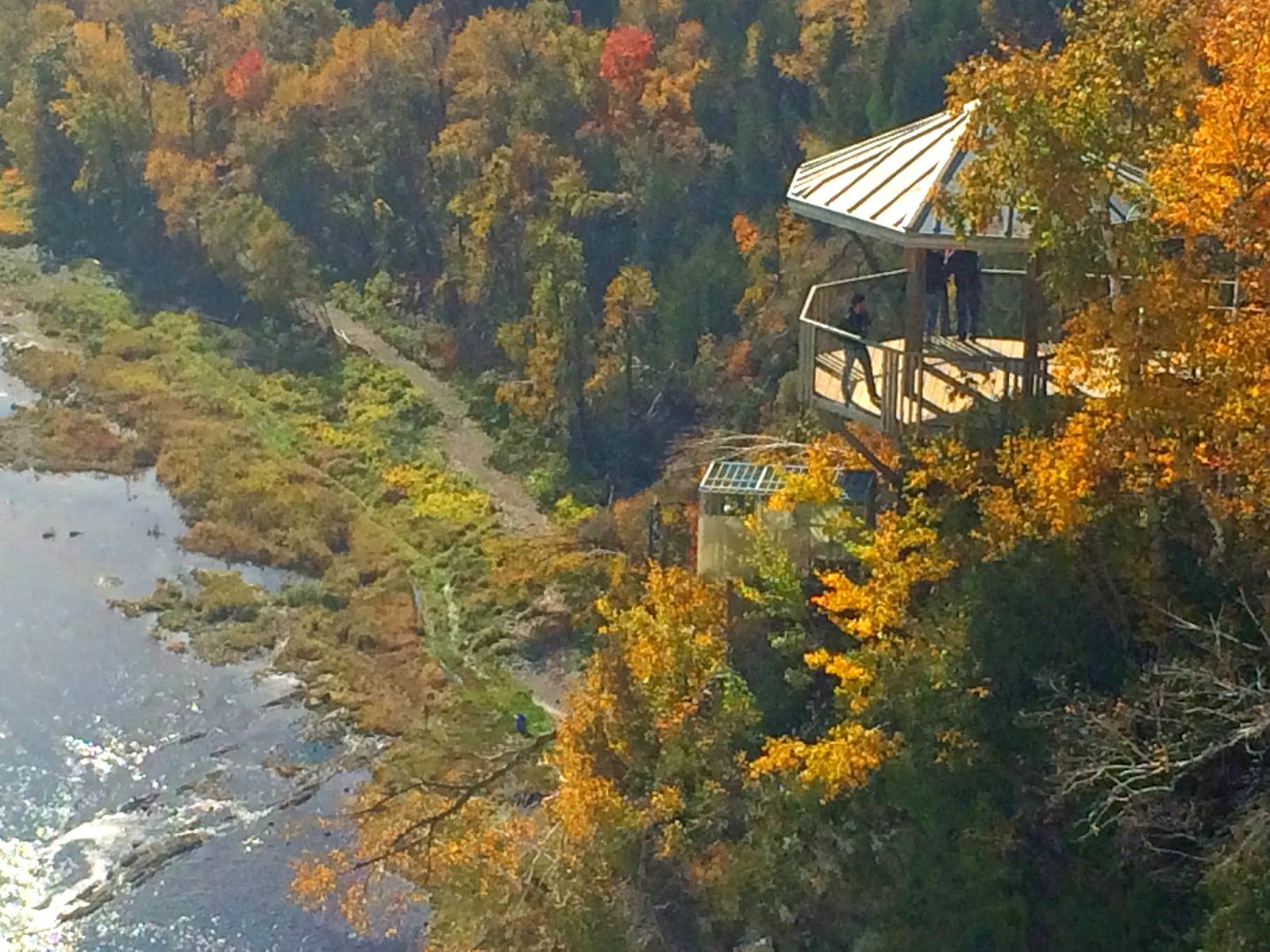 As we were ascending up the hill, we had a brilliant view of the river laid out in front of us, including the Ile-d’Orleans where we’d just been plus a special bonus of fabulous rainbow, shimmering in the mist of the waterfall as it thundered over the edge and cascaded into the river below. At the top of the waterfall is an historic mansion, built in the mid 1800’s by some well-to-do chap who’s name I don’t remember, a gift shop (huzzah) and a lovely bridge that you can stroll across, and freak yourself out on, peering over the edge to the rapids below and wondering why anyone would attempt going over the falls in an oak barrel. I thought about a game of pooh-sticks but realized that 1) it would be a fruitless endeavor and 2) no-one here would likely have the faintest idea what I was going on about.