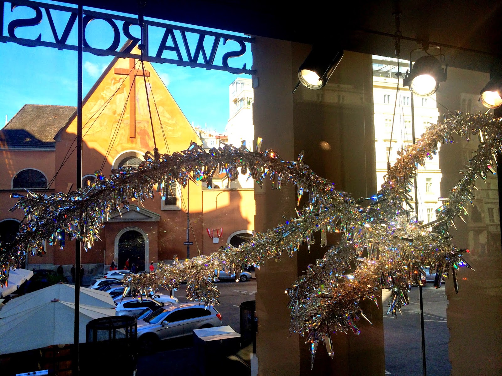 However, after about an hour of this, both my jet lag and my bladder started complaining, so I was forced to fire up the GPS on my phone (i know, I know- I could have used this the whole time, but I was preserving the juice for taking pics!) and decided to navigate my way to Stephansplatz – really the true center of town, where all the tourists go, hang out and take pictures of the very impressive church, Stephansdom. Looking for a suitable place to stop, unwater and re-water, I just so happened upon Steffl – the Sak’s of Vienna – which claimed to have a fabulous cafe on its roof deck with stunning views. Just the job, I thought. En route, I happened to go past the showcase Swarovski crystal store – how on earth I managed to leave that place without buying something is beyond me but you can just imagine the fabulousness that lurked within. Actually, you only have to imagine a bit – I took some pics of the highlights!