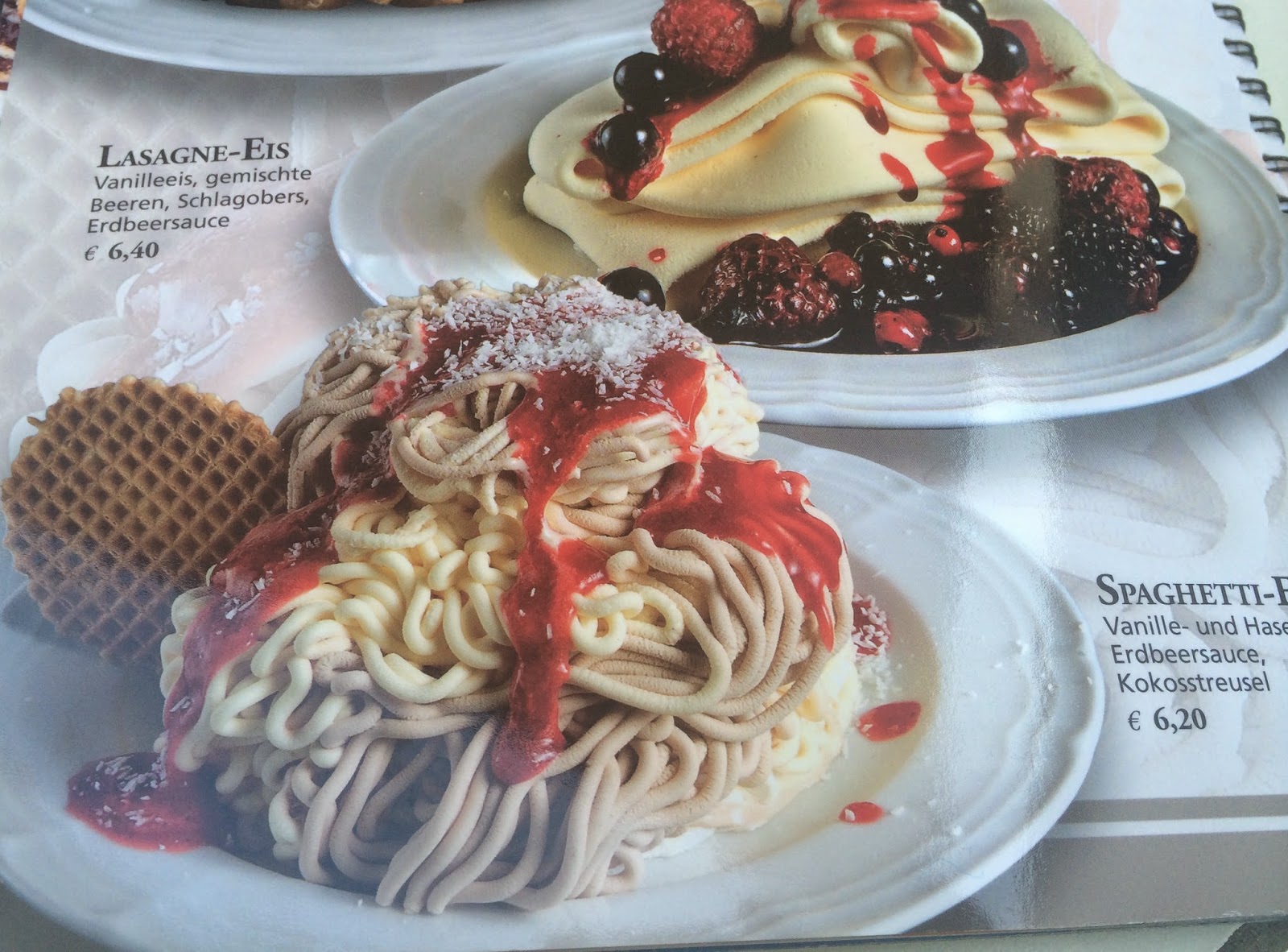 a picture of a fake spaghetti dessert made out of ice-cream |