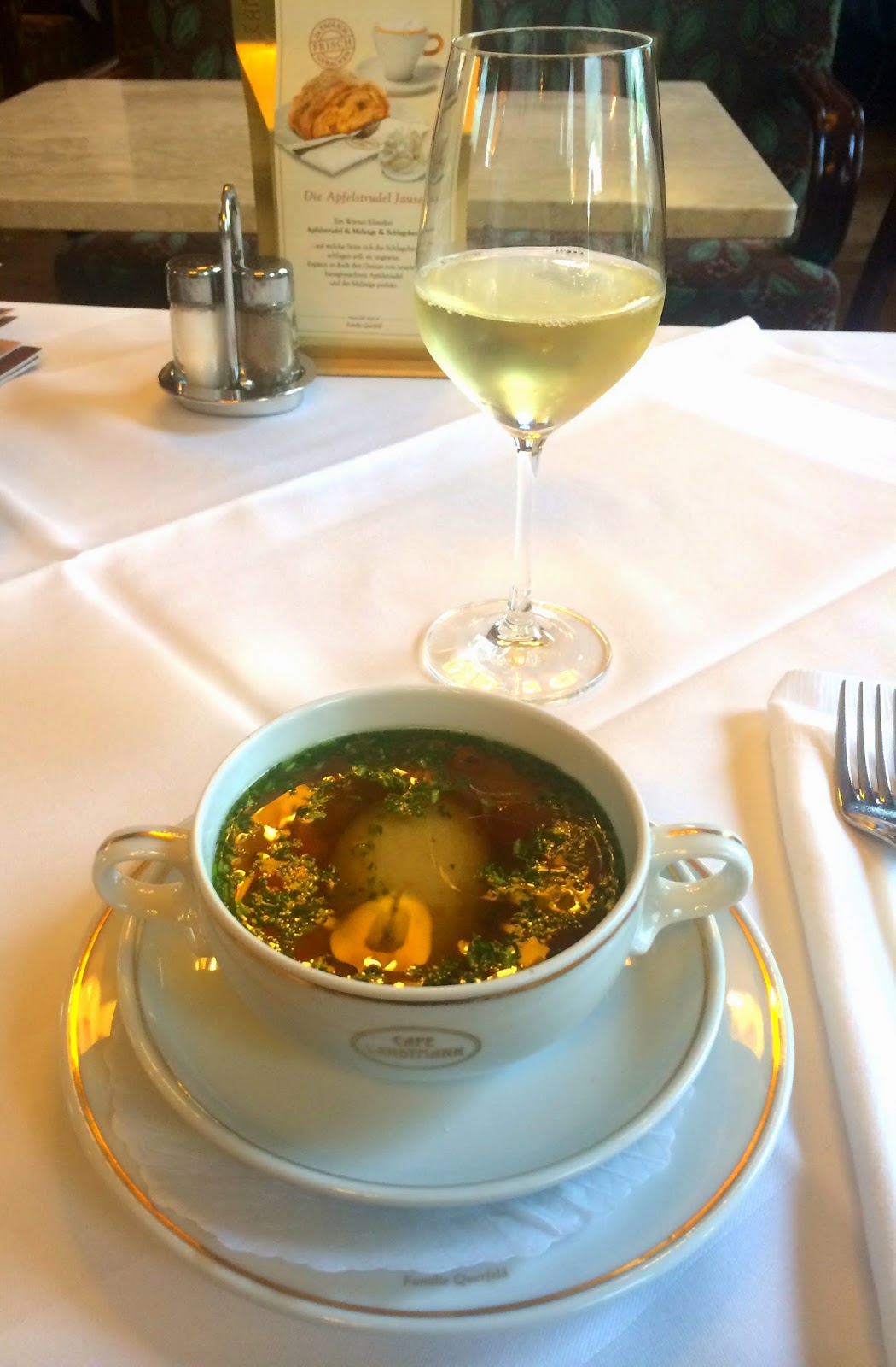 So, instead of a session on gastroparesis, instead we headed into the city center (I was a pro at this by now, so hopped onto U1 to Stephansplatz with hardly a second thought) and decided to indulge in some alternate gastric endeavors! Stephanie had read about this great Viennese cafe that was supposed to be excellent so – given it was almost lunchtime – we figured now was as good a time as any to try it out. And – again I might add – the following pictures were taken all in the name of research so that you, dearest blogwatchers, can share in the experience (and not, unlike me, have to work my flabby ass off when I get home to Chicago to shed the excess chubbage!).