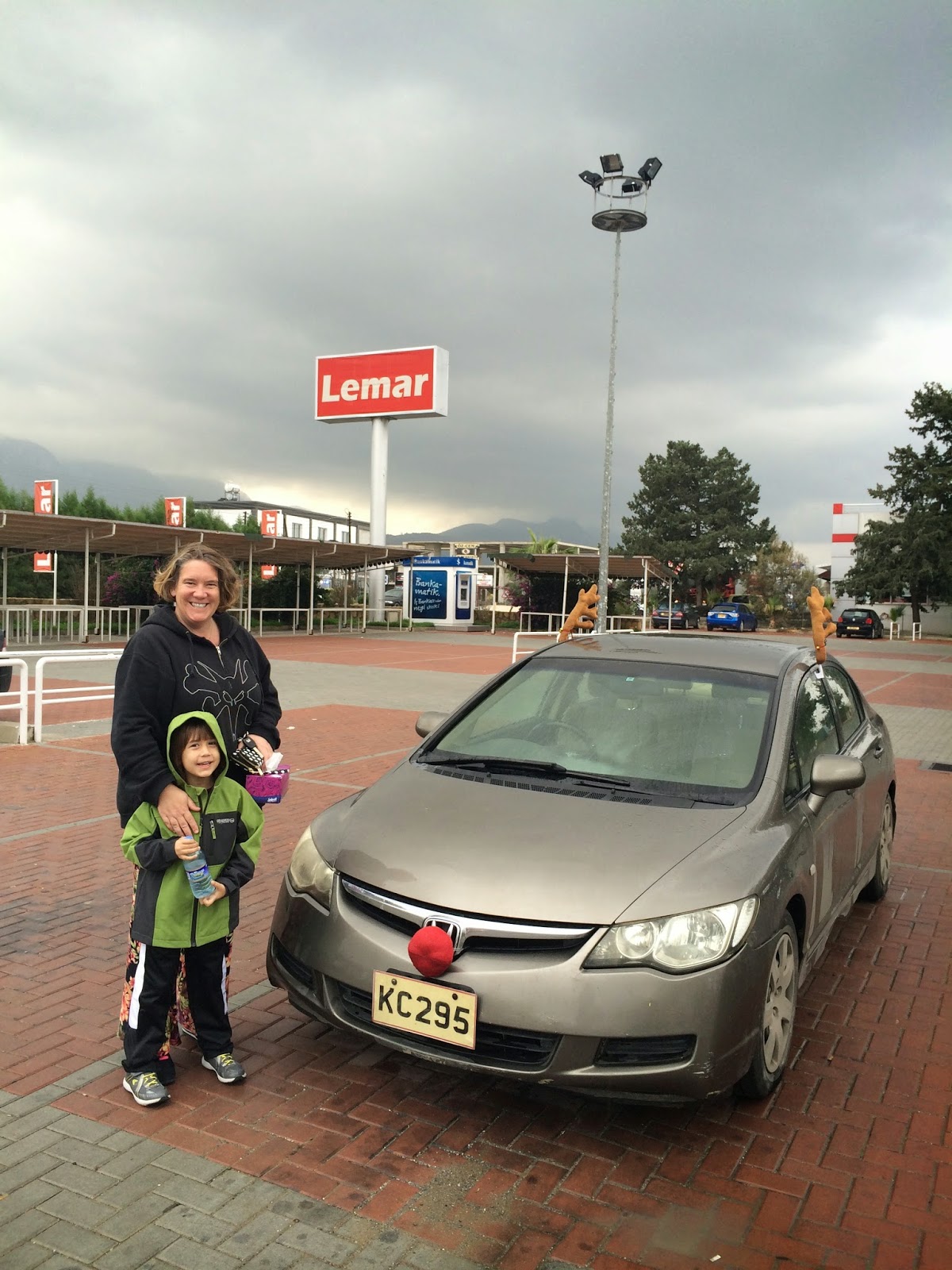 My first thought was – bloody hell, Thomas has grown!!  Last time I saw my sister Loopy and her two sons Eren and Thomas was over two years ago – Eren is now 5 and Thomas is 17 – and they’ve certainly changed!  Eren is now talking 19 to the dozen, switching effortlessly between Turkish and English, and Thomas has properly grown-up into a 6ft 2 strapping young man!  Loopy is still her fabulously funny, batty self and it was just brilliant to see her and Thomas waiting for me!  To my relief, all my bags turned up, I wasn’t stopped going through customs and questioned about the amount of plush velour I was bringing into the country and before long, we were pulling up outside Villa Ten Ten in our fabulous Reindeer Honda Sleigh.