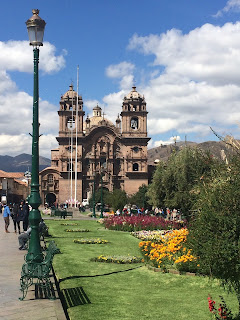 In front of the cathedral was a beautiful little planted square, jammed full of beautiful flowers in full bloom, so we sat on one of the benches there, consulted the guidebook to try and figure out our plan and fended off multiple vendors of blankets, paintings, alpaca keyrings and other artisanal knick-knacks. After a while, we picked a local tour operator that was well-reviewed, so trundled off to find their offices which turned out to be fairly close by. Once there, we went for it and booked up the following: a city tour of Cusco for today, an all-day excursion to the Sacred Valley tomorrow and finally a cooking class for Thursday!