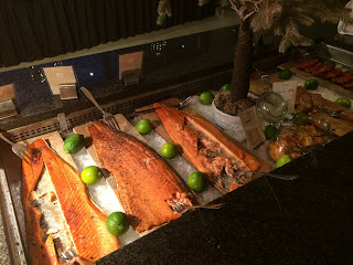On the envelope we’d received when we checked in were our assigned times and seating for our meals. We’d decided to go full board, thanks to a good tip by A&K, so didn’t have to worry about potentially not being able to get into the dining room because of a lack of space. We were the second seating for both lunch and dinner (1.30pm and 8.30pm respectively) and. as we found out, sometimes that means they have run out of stuff by the time we get there. So far there’s been plenty to eat despite not having all the choices all the time, so we’ve not gone hungry (plus our caloric intake is far far exceeding our caloric output at the moment!). Lunch was a buffet and was actually pretty tasty. The ship and crew are very hot on hand hygiene, given the potential for contagious nastiness given the density of people, so as you swipe your room card to get into the dining room, a crew member pumps a dollop of hand sanitizer into your hands. Of course, its not going to stop all the nasties, but its got to help and it was nice to see them taking health and hygiene so seriously.