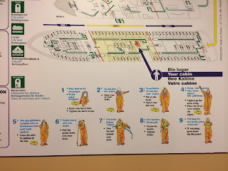 Boarding was super easy (just walk up the gangway!) and the reception check-in desk was just inside on the right. Unfortunately the boat was full so there was no chance of upgrading from our Unspecified Polar Inside Cabin, alas – but at least we tried. Fortunately my ManpanionTM folds up into a small space, so I’m sure we’ll be fine. The lady at the desk gave us our room cards and we also opened up an account so all our on-deck purchases would be charged to it. I know it will make it way too easy to not have any idea what we are spending but what the hell. At least we’ll just get one enormous sticker shock at the end, rather than multiple little sticker shocks throughout each day!