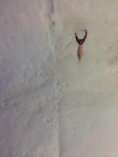 | And curiously, a shovel handle buried in the snow tunnel ceiling. Didn’t spot a little gloved hand nearby fortunately…. |