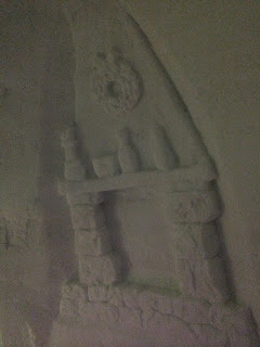 Our guide talked for a few minutes to tell us more about how the hotel was constructed – the walls of the main dome are six meters thick down at the base, three meters thick at the top and its built out of a mixture of snow and ice, called sn’ice – which is nice! I asked what happens when it melts and whether it gets unsafe to be in, and our guide told us that it actually melts from the top down. After it starts to get warmer outside and things start to melt, one day you’ll just see a little hole in the roof – and this hole will get progressively bigger and bigger each day until the whole structure has melted down and you are left with a kind of icy ring-fence on the ground. After that happens, then they demolish the rest of it and cart the ice away so that the ground has time to dry up ahead of the whole process beginning again the next year. Fascinating stuff.