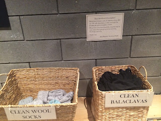 Good question – and this is where the rest of the structure that is helpfully not made of ice comes in! So right at the end of the corridor where the rooms are is another door – and this one leads into the barn structure, restaurant and lounge areas I was telling you about in my previous blog. It also houses the loos, showers and sauna area as well as a luggage storage facility AND, most importantly, the place where you collected the sleeping bag that was going to keep you alive through the night!