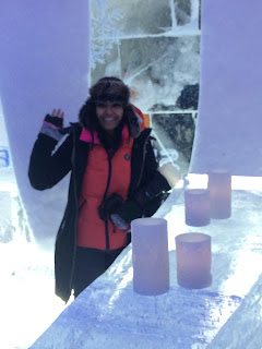Pretty cool (ahem), eh? This part is the main chamber of the hotel, serving as the IceBar after dinner where we were to enjoy one (or two) shots of icy-cold vodka later on out of shot glasses made of ice! This was still in the early part of the day, though, so instead we were handed little glasses full of winterberry juice instead, which was dark purple, sweetly thick and delicious!