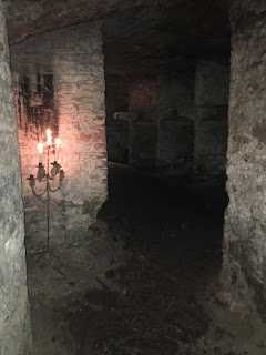 After wandering down some more of the narrow passages (called “closes”) for which Edinburgh is famous, we then headed underground to the very spooky Blair Street Underground Vaults! This was absolutely fascinating – a city underneath the city – and which used to be the site of all manner of nefarious goings on. Of course, Simon told us of the many ghost and spirits which were rumored to haunt these vaults – I’m not really into all that kind of stuff BUT given the location (pitch black apart from one or two very faint lights) plus Simon’s very effective storytelling , it was impossible not to feel a bit spooked out!
