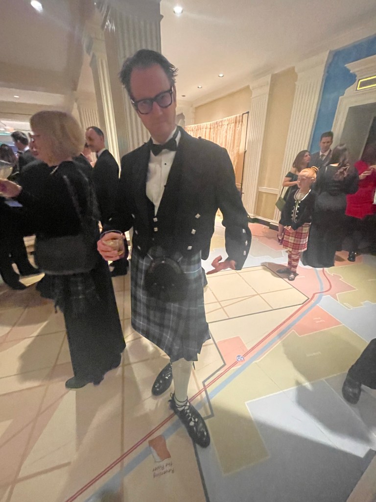 Unfortunately, while we were in Vermont, I managed to pick up a stinking cold from somewhere (thankfully it wasn’t COVID) so that kinda knocked me off my feet for a solid week and a half. As of writing, its been over 2 weeks since we got back and I’m still not back to full health yet – grrr. For me, the worst bit about colds is that they always migrate to your chest as a parting gift so, even if your head is no longer congested and sniffly, the dry unproductive cough it leaves behind is irritating AF. However, despite feeling pretty shitty (ManpanionTM also started to feel rubbish a few days after me – sorry, my love!) we managed to drag ourselves out to the 177th Annual Scots Feast of the Haggis celebration – held at the Chicago History Museum. I had booked it about a month ago and thought it would be nice for us to get all dressed up for a fancy night out – but really it was just an excuse for me to get to see ManpanionTM in his kilt again! I just love me a man in a kilt – soooo sexy!! I was having a fabulous Hair Day (thanks, Jessie!) so it was fun and also for a good cause, as it was raising money for the Caledonia House – an assisted living and memory care facility out in the burbs. So that felt good to support a worthwhile local charity.