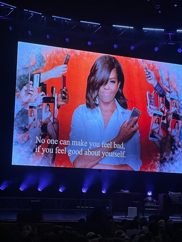 And then – I had a surprise end to that day. Just before I set off from the burbs into the city for my flower class, I get a text from one of my Bootcamp ladies saying that she had a couple of spare tickets to go and see Michelle Obama being interviewed by David Letterman that evening at the Chicago Theater – and was anyone interested? (this was to our bootcamp group chat). And – similar to my train of thought around the bootcamp itself – I thought “yeah… why not?”. So I said yes, I was interested – and that’s how later that evening, I found myself meeting up with one of my new bootcamp ladies and her friend, listening to Michelle in conversation with David Letterman for about 90mins. I didn’t know what to expect – but I certainly didn’t expect her to be as funny as she was. She was brilliant. A great story teller – very witty and articulate and incredibly inspiring. She was there to promote her book and talk through some of the main ideas in it (it was written in the early days of the pandemic and is about how to overcome difficult times) and I have to say “I’m sold!” I haven’t bought the book yet – but I definitely will as I’m sure there is much more in the book that she didn’t have time to cover. If she is as good as writer as she is a conversationalist, it should be a terrific read.