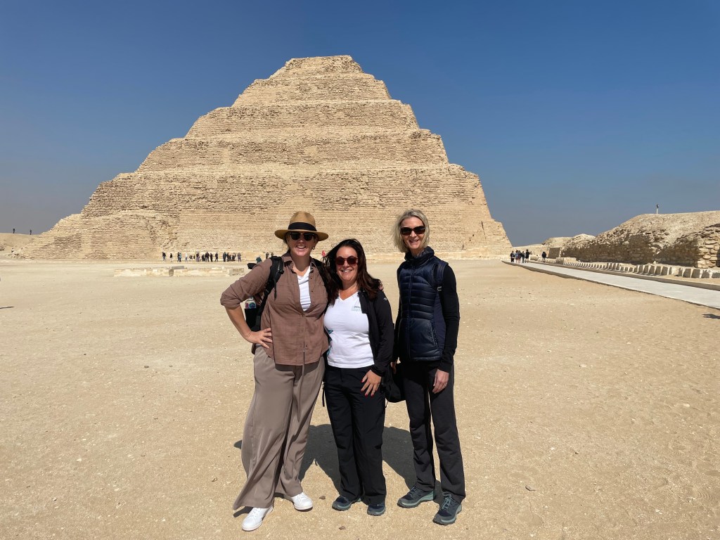 Our next stop after Memphis was to go see the stepped pyramid at Saqqaara – the first ever pyramid constructed in the 3rd Dynasty for King Djoser in 2667BC (there were 30 great dynasties of ancient Egypt in all, beginning from around 3100 BC – that’s over 5,000 years ago!!!). (if you’d like to learn more about all 30 dynasties, here’s a cool website I found that has some great information – including a typewriter that you can use to write your name in hieroglyphs!! https://discoveringegypt.com/)