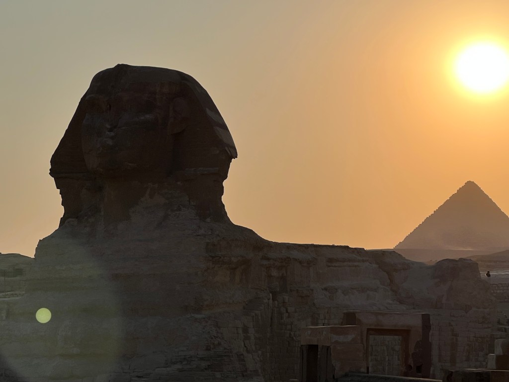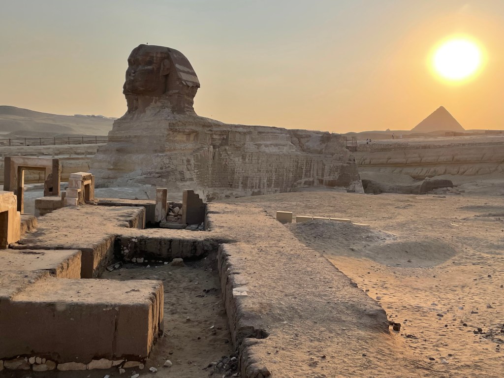 We finally had lunch just before 4pm (fortunately Lisa had brought snacks!) which was delicious – especially the rice pudding which was sublime. So creamy. After lunch, we stopped to say hi to the Great Sphinx but didn’t have all that long there, as the sun was setting and the traffic guards didn’t really like us stopping right on the road so were trying to shuffle us on quickly (Gina sweettalked them into letting us stop for just a couple minutes). So we didn’t have time to wander up close and take a good look (which was a shame) but it was still incredible to see this iconic image right there, in front of our eyes. For some reason, I’d kinda thought that the Sphinx was right in the middle of the desert, surrounded by nothing by sweeping majesty sand dunes – I certainly wasn’t expecting to see it right next to a main road!!! As we didn’t have long to stand around and chat about it, I looked up some additional info on the Sphinx from Wikipedia – here’s the link https://en.wikipedia.org/wiki/Great_Sphinx_of_Giza but TL;DR – it’s the oldest known monumental sculpture in Egypt and one of the most recognizable statues in the world. The archaeological evidence suggests that it was created by ancient Egyptians of the Old Kingdom during the reign of Khafre (c. 2558–2532 BC)