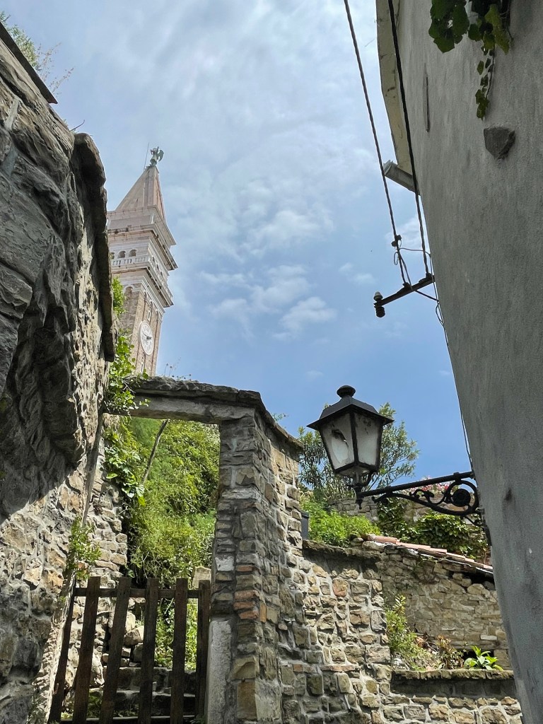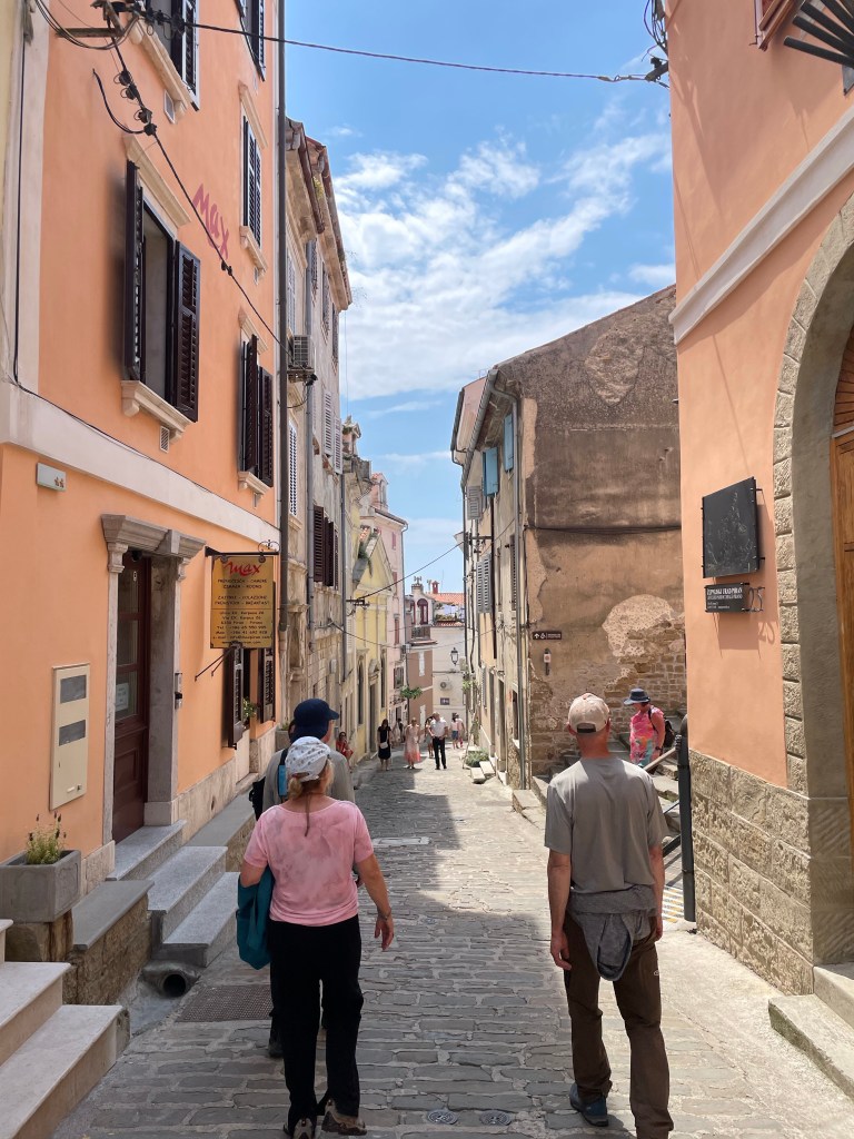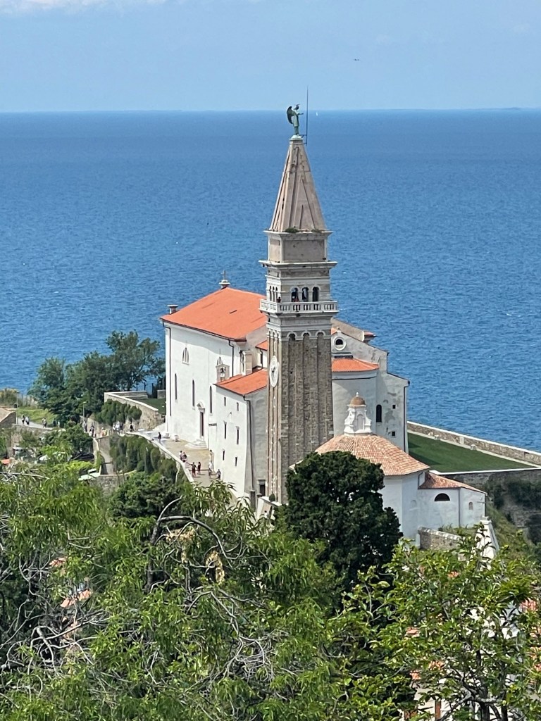 After the cave – and the not inconsequential number of steps climbed – it was time to reward myself with coffee and a chunk of traditional Slovenian cake, called Gibanica. Now, it looks like a tiramisu – but its not. At all. Its a layer cake of apple, walnuts, cottage cheese (of all things) and some other stuff I can’t remember – and its disconcertingly served warm! As you would expect, its pretty heavy – but it was actually quite tasty – and was the perfect accompaniment to my excellent coffee! I ate a bit and boxed up the rest (I ended up having it later that evening for dinner!) as it was time to leave for our next stop – Piran – a small, picturesque town on the Istrian coast.