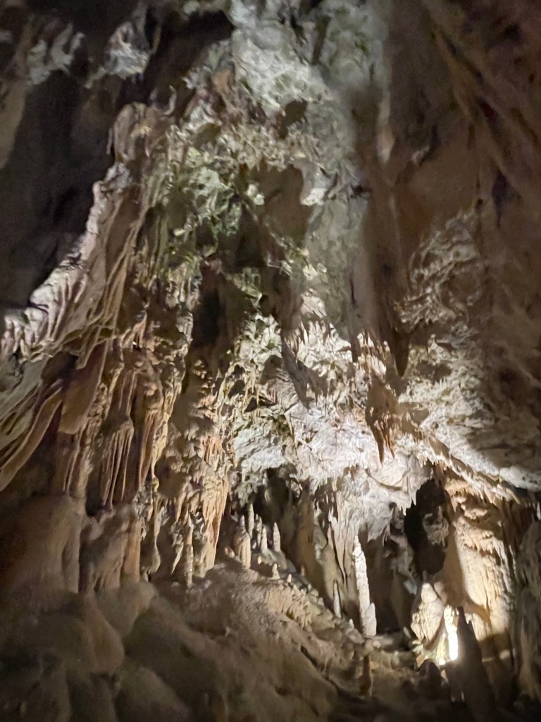 The caves were divided into the “old” and “new” part – both parts are of course the same geographical age, but there was a gap of about 100yrs between when the first set of chambers were visited by tourists (from 1818) vs the second part (after the 1st world war). And – fun fact – Thomas Cook (yes, the Brit who invented the package tour concept) included the Postojna caves in his first ever journey around the world, as he recognized their significance as an incredible sight to see. The electricity was introduced into the cave for the visit of the Austrian emperor Franz Joseph and his wife CeCe – as well as the installation of an underground post office! (now a gift shop!). The second part was split into three main sections – the spaghetti chamber (for obvious reasons), the white chamber and the red chamber. The red is due to iron oxide and the white color is due to pure limestone and formation of calconite crystals (which also means they sparkle in the light too). Included in the white chamber is a formation called the Brilliant – and its the symbol of Postojna Cave. There is also a “ballroom” (where the chandelier is) as well as an “Concert Hall” which can hold up to 10,000 people and where concerts – and even basketball demonstration matches! – have been held in the past! All in all, it was a spectacular place and I’m very happy I didn’t miss it!! https://en.wikipedia.org/wiki/Postojna_Cave