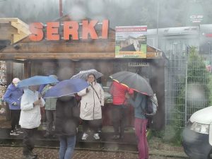 Its been a very packed couple of days in Zakopane! Alas, my luck with the weather finally ran out – and unfortunately it was on the day that we were supposed to do a 4hr hike in the Chocholowska Valley! We had started the day with a trip to another cultural center called the Red Manor House (named after its red tiled roof) where we were able to see (and shop) the local arts and crafts, including some of the traditional Highlander style clothing we’d played dress-up in the day before, as well as lots of wooden carvings and glass paintings. Some of the glass paintings looked kinda amateurish so I was not tempted by any of those – but I did buy a cool looking carved wooden bird (I would be revising my opinions after our glass painting workshop the next day!). After our trip to the cultural center, we then visited the oldest church in Zakopane (they seem to have a lot of these!) – again, in the trademark style of the region featuring rustic carvings from local people. I don’t recall too many of the details (I tend to zone out in churches) but basically it was all very old.