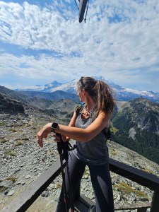 We began hiking at an elevation of 6245′, joining the famous Wonderland Trail at an elevation of 6800′. We then took a little side trip to hike 2.6 miles to the Mt Fremont Lookout Tower, which had an elevation of 7181′. What all these numbers mean in practice (and I promise I won’t bore you with any more) is that we started our hike pretty much immediately heading upwards! I was very glad I’d been training as much as I did – my backpack still felt heavy but not the leg-staggeringly heaviness that it felt like for the first couple of days at Isle Royale. And – while the upwards path towards the Lookout Tower was definitely, well, upwards – I actually felt pretty good and managed to keep my breath the whole time. The only time I lost my breath was when I remembered to stop, look up from my feet, and take in the incredible vista (corny, but true). It really was spectacularly beautiful, especially when we got to the top of the lookout tower and could see so much of the park laid out all around us. Directly in front of us was Mount Rainier itself, flanked off to the side by Skyscraper Peak which – according to our guide – we would be climbing up later on in the week! From this view, it seemed impossibly far away, so it was a bit nuts to think we would walk all that way over the course of the next 5 days, but that was the plan! The weather was absolutely perfect too – bright blue skies and warm – but not too hot – sunshine.