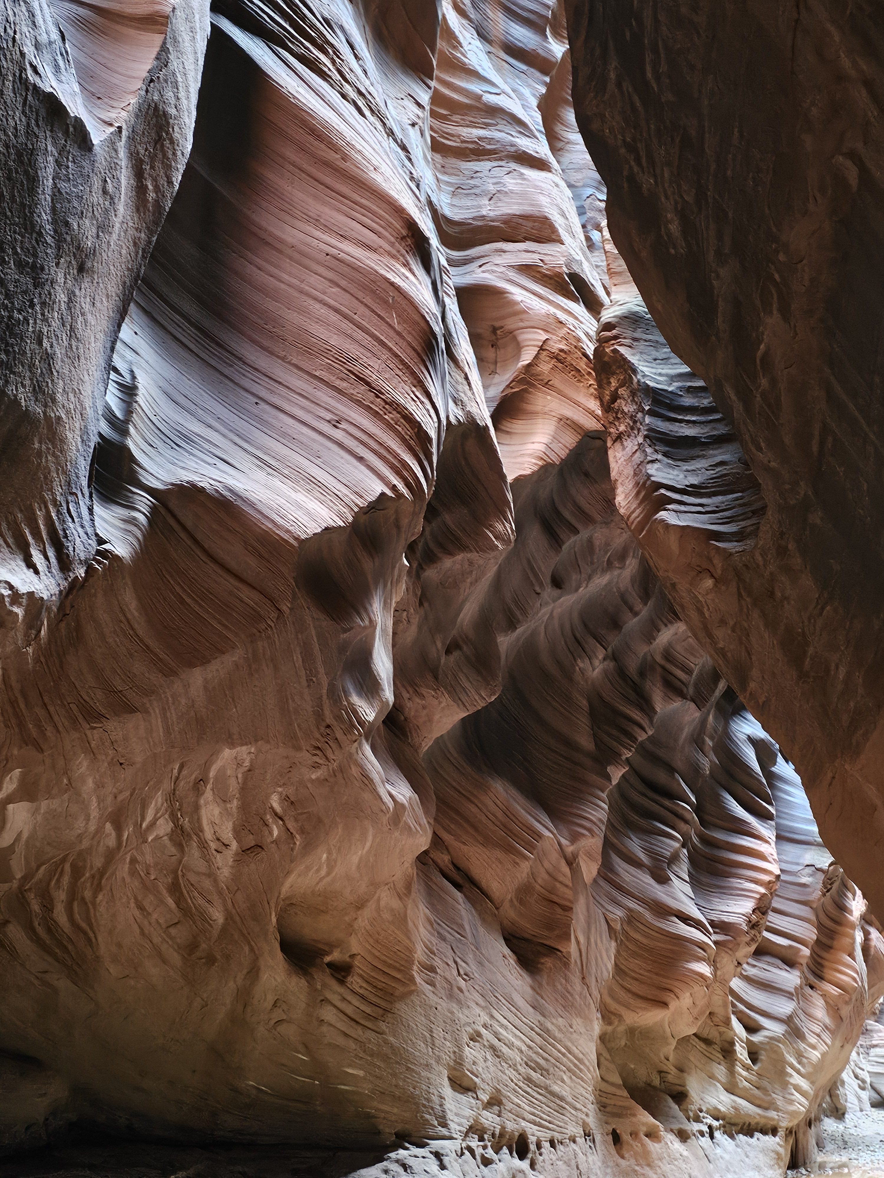 We then waited on the Other Side as each of our gang ascended the boulder – until, unfortunately, one of our group was not successful in her initial ascent attempt. After some discussion, it was agreed with our guides that, from an abundance of caution, that her and Ronnie would take an alternate route out of the canyon – instead, looping back into and then out of Paria Canyon, rather than continuing up Buckskin Gulch and exiting via the Middle Route rock scramble. It was a real shame that the whole of our little tribe was not able to finish together after so many awesome shared experiences up to this point – but safety comes first and it was very impressive to see how professionally our guides handled the situation (their company is called BackCountry Found, btw, so deffo look them up if you want guiding services in the Grand Canyon area https://www.bcfound.com/). As a special bonus for clearing the Jam successfully, we were all awarded with a butterscotch lollipop to suck on – we felt we had all earned it.
