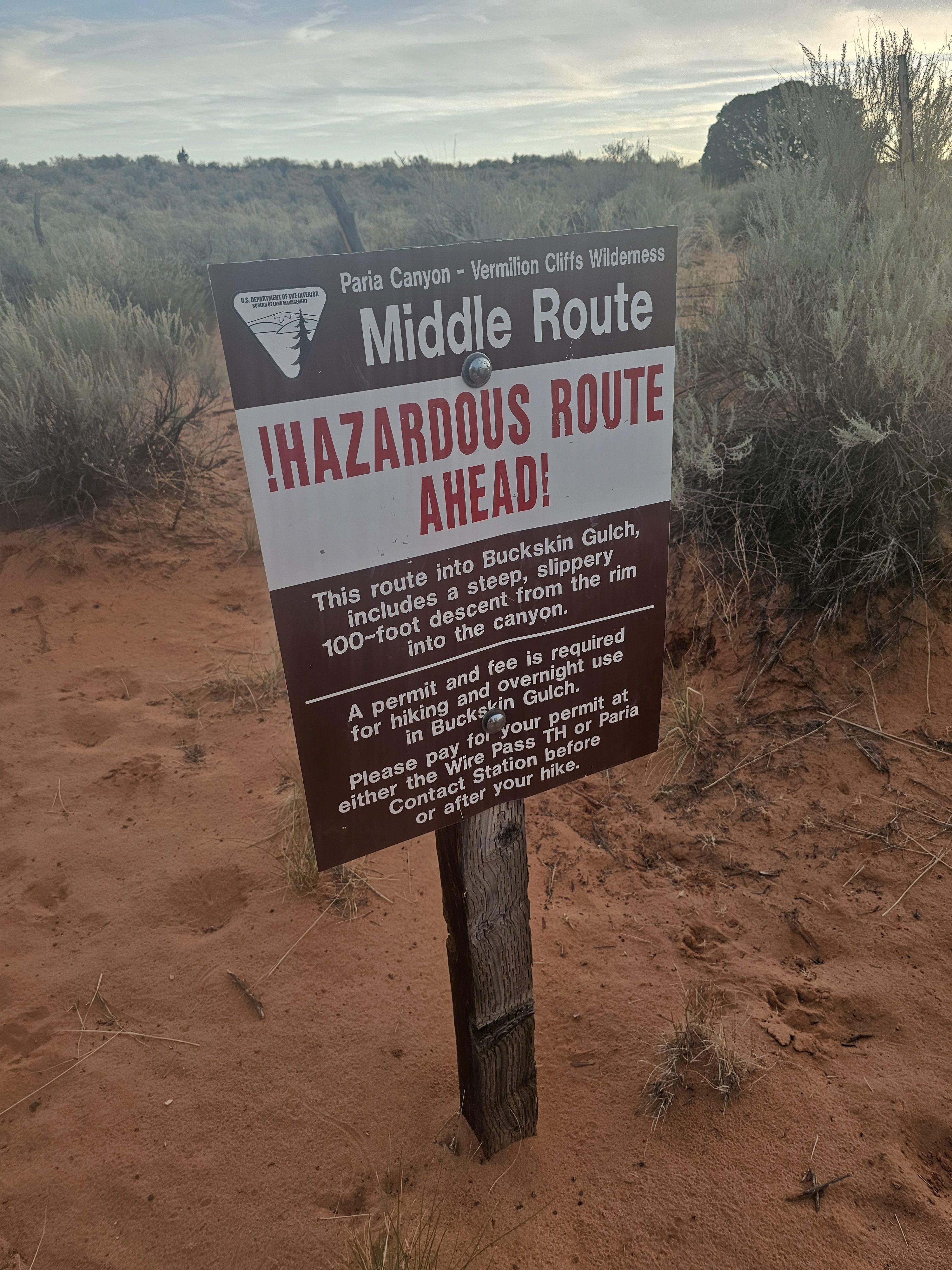 After we had successfully exited the canyon, the fun wasn’t quite over as we then had a mile long slog through sand (including some decent elevation gains!) to fully get out of the Middle Route and up to where the trailhead starts and our Backcountry Found van was parked. Because of the Boulder Jam Incident, we were quite a bit behind what the usual schedule would have been, so we got to the top just as the sun was beginning to set. The views back across the Paria Canyon Vermillion Wilderness were breathtaking and, in the evening glow, it was absolutely stunning. Finally, we were able to look down and see the canyon we’d spent the last 5 days in, stretching away before us. Once we got back to the van, Wagner had brought some snacks and drinks for everyone – so we gratefully fell on the fresh strawberries, orange slices and pickles (?). There was even a last surprise and a tray of freshly baked brownies waiting for us in the van! One other important task was for us all to deposit our Poop Tubes into a big black container (labeled with our names) which we would then empty into a dumpster on our drive out of the park. For those of you interested in keeping score, I managed 3 poops (of varying sizes and degrees of satisfaction) and Amanda was, indeed, crowned the Poop Champion of the trip.