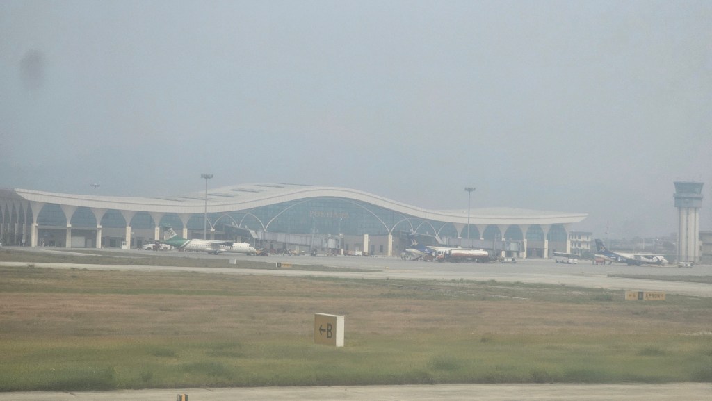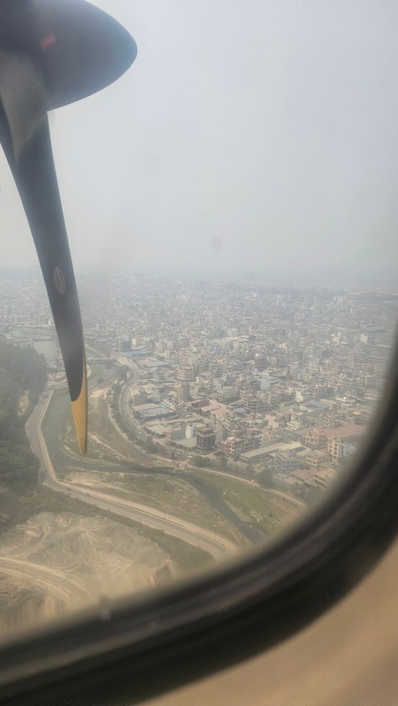 We were up early, ready for a 7am departure. It didn’t seem to take as long to get back to the airport as it had when we arrived (isn’t that always the way?) and Tribhuvan airport domestic terminal was as chaotic and busy as you’d expect. We soon discovered that it was even more crowded and busy than it should be because – yes, you guessed it – there were delays for the planes taking off because of the weather conditions! And – even worse – it was because of low visibility in Pokhara, not Kathmandu! It seems like the thick haze and smoke is pretty much everywhere right now, so there goes my hope of clear skies and clearer lungs, at least for the next couple of days. Apparently, its not just the traffic pollution that’s contributing, but there are a number of wildfires burning right now (both prescribed burn and not) that are making it really bad. And it’s not just me being an oversensitive flower – the Ministry of Health actually issued an alert today about the hazardous levels of air pollution in Kathmandu. https://thehimalayantimes.com/kathmandu/mohp-issues-health-alert-as-air-pollution-hits-hazardous-levels-in-kathmandu