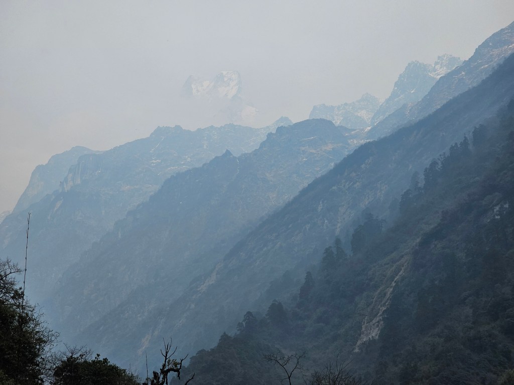 And suddenly – there is was! I had made it alive and relatively unscathed! My reward – a searingly hot shower where I could scrub all the muck and dust off and steam out my nasal passages. It was amazing. A transcendent washroom experience. That’s one of the things I love about traveling – particularly camping and hiking – it really resets you to appreciate the small luxuries – like a hot shower after a hard day’s hike or a toilet that has a seat. I did manage to drop my precious roll of TP onto the bathroom floor as I was sitting on the pot, after my shower, turning the outer third into mush, but I’m sure the tea house will sell me a roll for 300 rupees (everything here costs either 200 or 300 rupees).