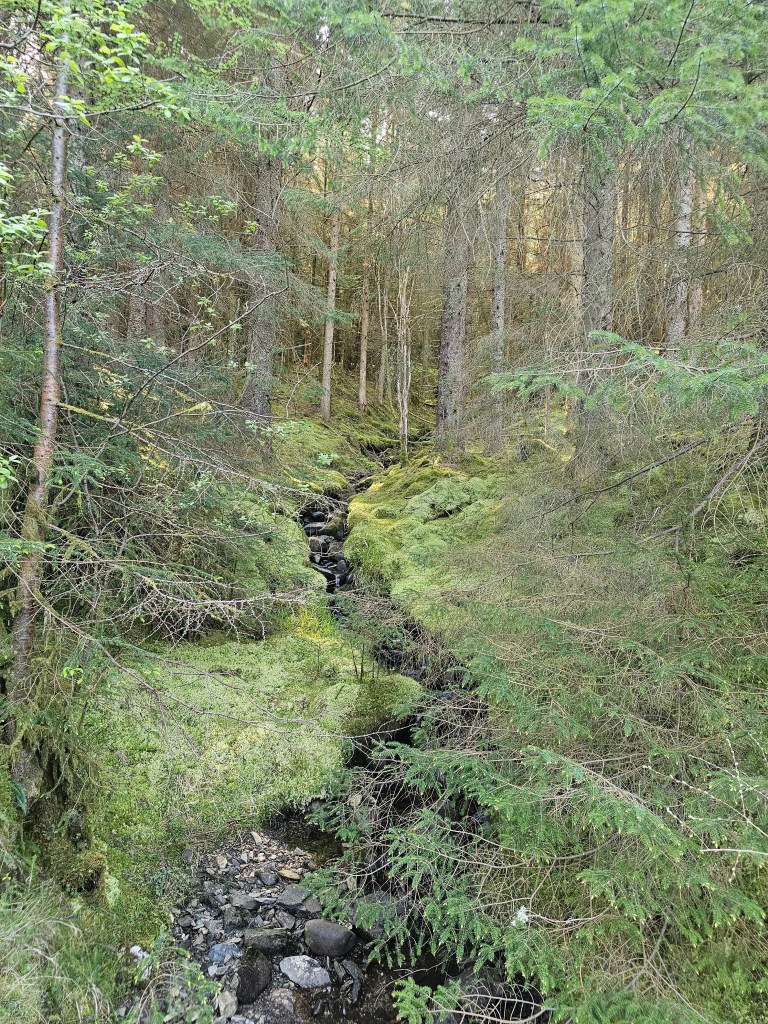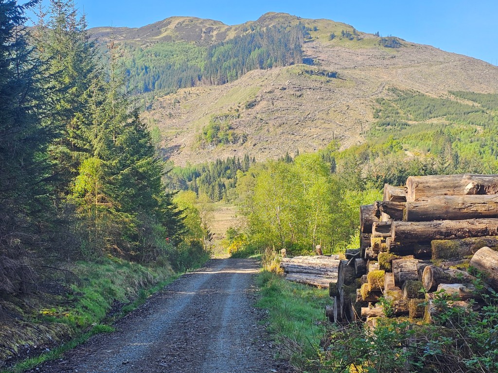 I made it!!!! I have to say – today was probably my favorite day of the hike so far. As you know, I’d been a bit nervous about the distance as its the furthest I’ve ever walked in a day – but I crushed it! I started a bit earlier today to make sure I gave myself plenty of time, so left Strathyre just after 8.30am. It was actually really nice to be out on the trail early – everything felt a bit quieter as if the forest itself was just waking up. The first 3 miles were pretty magical – towering pine trees lining the forestry track, weathered logs and rounded boulders covered in a vibrant green moss so comfy you wanted to lie down and take a nap on it, dense carpets of daisies and bluebells illuminated by the sun’s rays. No-one in sight and no traffic noise to be heard. Just the chirping of the birds. Perfection.