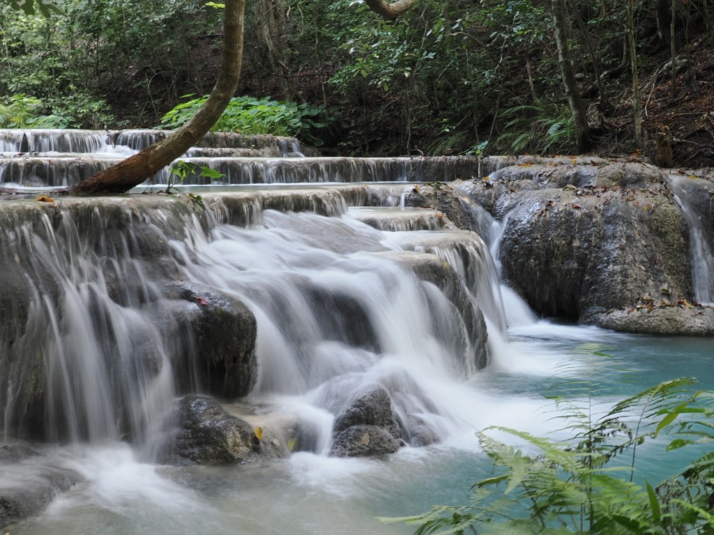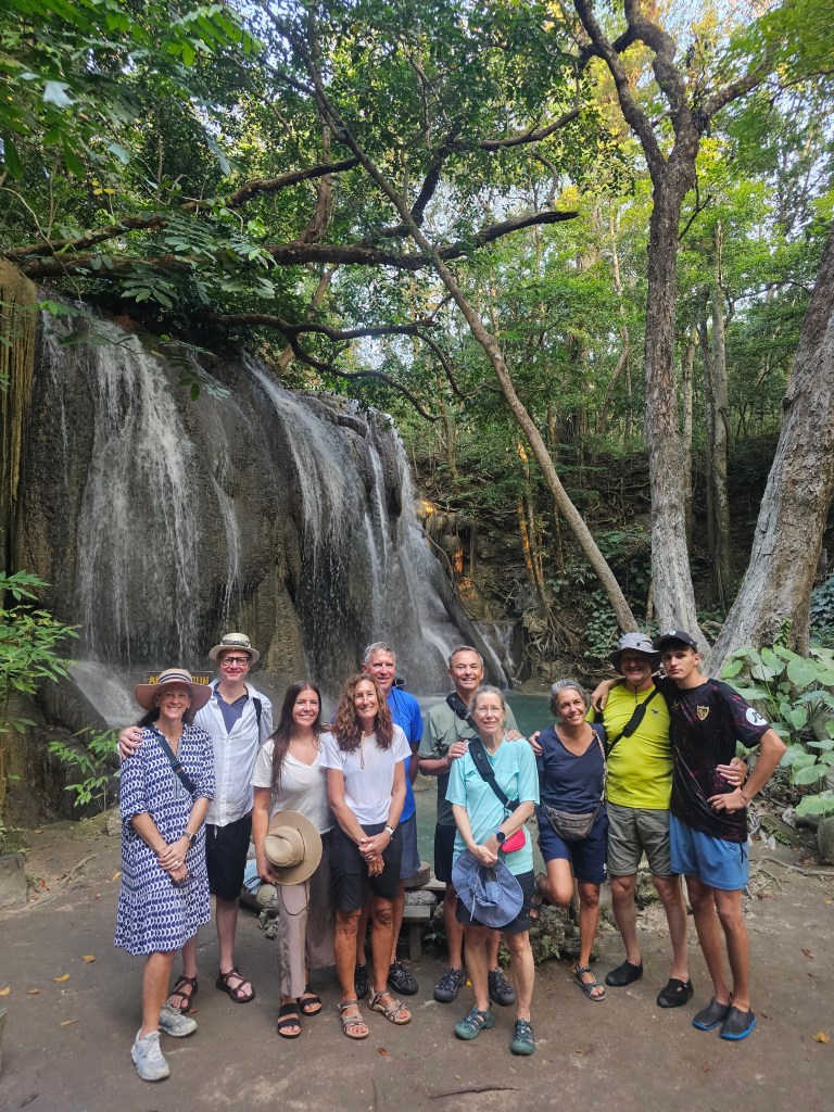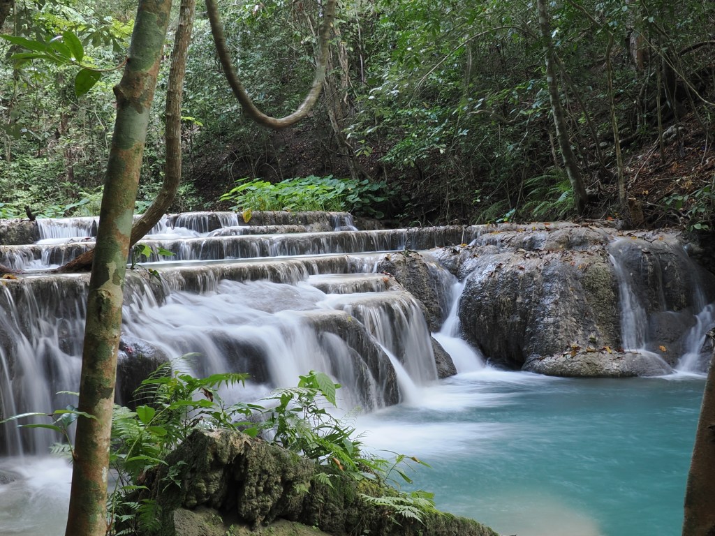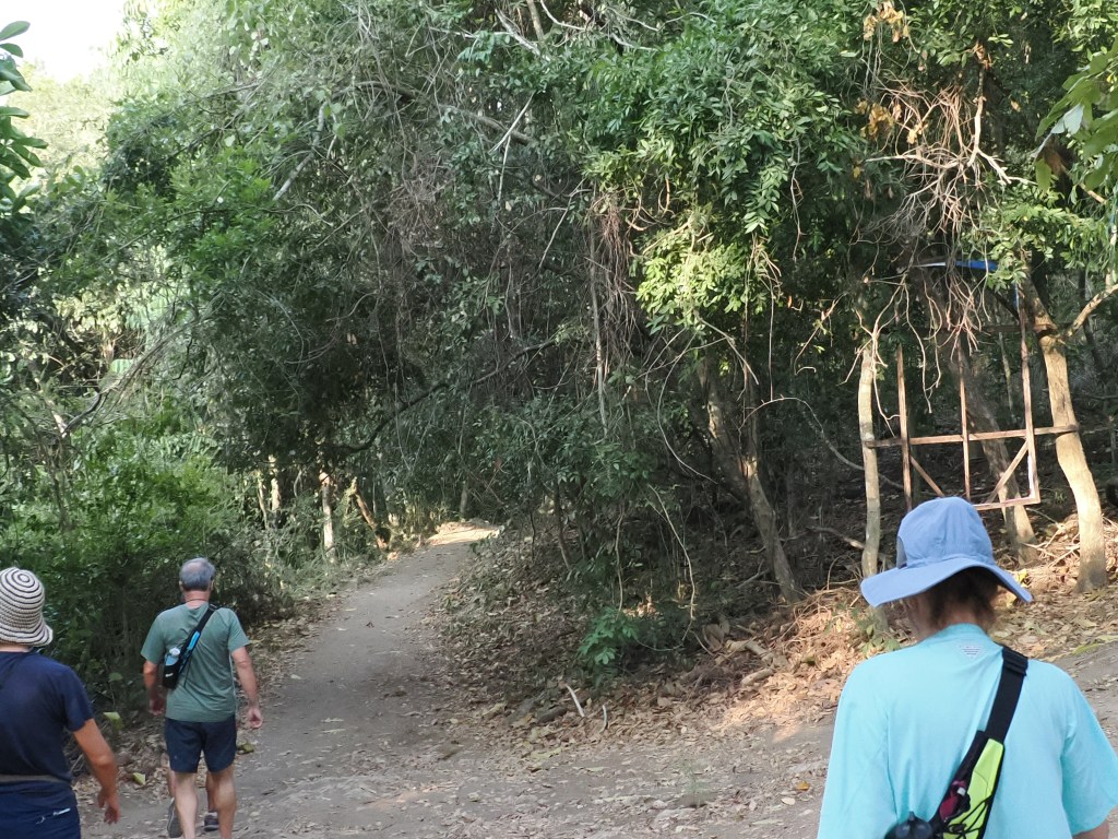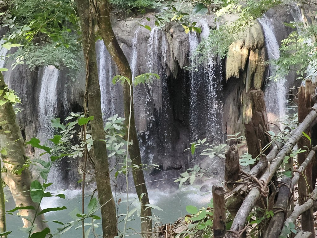 After the welcome festivities, we took a short walk through the village, stopping by the local soccer pitch where a tournament was in full swing, to get on our Aqua Buggy for a bouncy 20 min drive through the forest to the waterfall. En route through the forest, we caught sight of one lone monkey, just sitting on the ground, looking for all the world like he was waiting for a bus! We heard several squawky birds – but no idea what they were as Merlin (my birding app) was stumped. After the ride, it was only a short walk to get to the waterfalls – and they were very lovely, as promised. While the falls themselves were nice (unfortunately Iguazu Falls in Brazil has kinda ruined waterfalls for us now), it was the series of cascading pools leading away from the falls that were more memorable, set against the lush backdrop of the forest. It was quite lovely. ManpanionTM went in and had a splash around, but I was content simply to stay on the river bank and take photos.