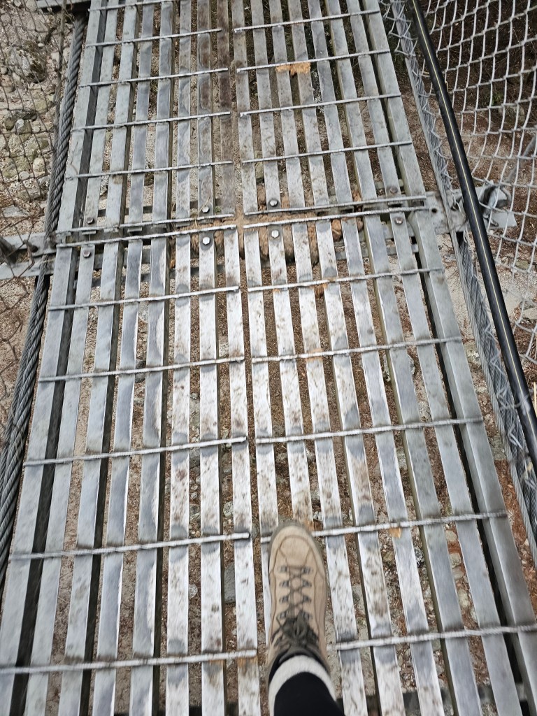 We crossed the river several times, so had to navigate 4 suspension bridges – they were not that intimidating (unlike the looooooog one on the ABC) except the second to last one felt a bit sketchy as it was super slippery, mainly due to being covered in a fine sheen of mule shit. Up until this point, we had also gotten lucky with the weather as it had stayed dry for the day – but a light drizzle had started to come down in the last half hour, which made everything a bit slicker underfoot.