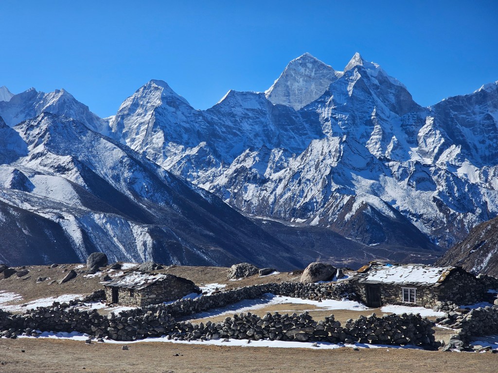 And now, I’m in my usual spot, tucked away in a corner, blogging. At least on this trip there is PLENTY of downtime to keep current with my blog. We only have one more night in a tea house in Gorek Shep tomorrow before we then sleep at Everest Base Camp!!! I am VERY glad I decided to bring my zero F rated sleeping bag as I suspect it will be cold AF. Looking at the weather for tomorrow, its forecast to snow with a high of 20F and a low of 1F!! Eeek!!