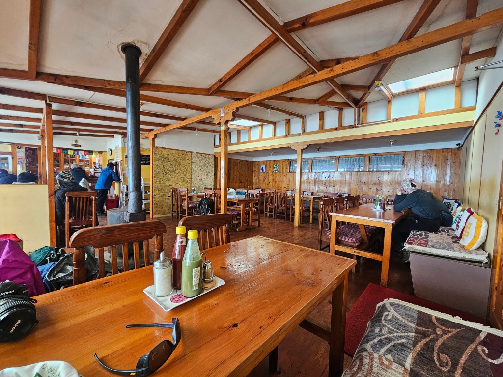 The tea house was pretty nice and I had – yep, you guessed it – egg veg fried rice! Despite it being on the early side for lunch, it was still busy but the staff have clearly got serving a large number of trekkers efficiently down to a fine art! Talking with DJ, apparently they can serve up to a thousand people a day! The process is streamlined somewhat by our guides and porters acting as the waitstaff – this is so the kitchen staff can keep cooking, without interruption, while the guides dole the food out to the tables. Pretty smart.