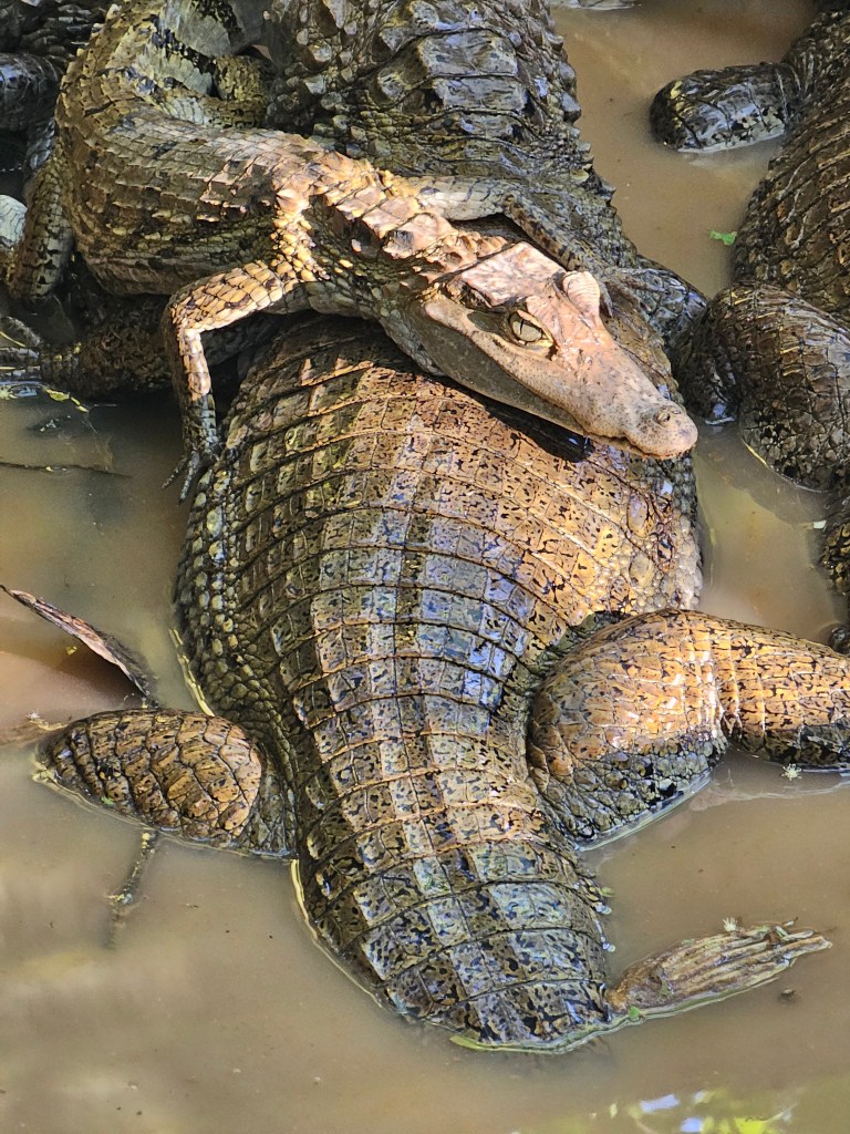 We also saw another pink toed tarantula, lots of chickens and – unexpectedly – an enclosure that had some spectacled caiman and yellow headed turtles in there! These were animals that Umburto had rescued from fishing nets and was raising them (eventually to release when they reached their full size of 2 meters long) to share with the school kids. He is also teaching the school kids how to raise and care for bees too, so it was very heartening to see such conservation efforts. I was pretty happy as I got to check another species off my Amazon wildlife bingo card! After the jungle walk yesterday, all I’m missing is a and a jaguar. I’m not gonna hold my breath for either – but maybe I’ll get lucky and see the monkey! (Fun fact – apparently the bees recognize Umburto – so if someone else were to try and open their hives, they would be very annoyed! Same for the caiman – they recognize him too!)